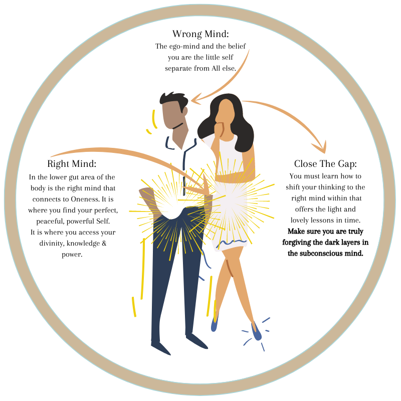 When you follow The Truforgiveness Way by forgiving within you remove the barriers that keep you stuck in limitation. The right mind is the mind you may know as your intuition, but via the gift of The Treasure Map, no longer will you be separate from the light inside. Rather, You will be at One. It is this truth of completion that grants miracles.